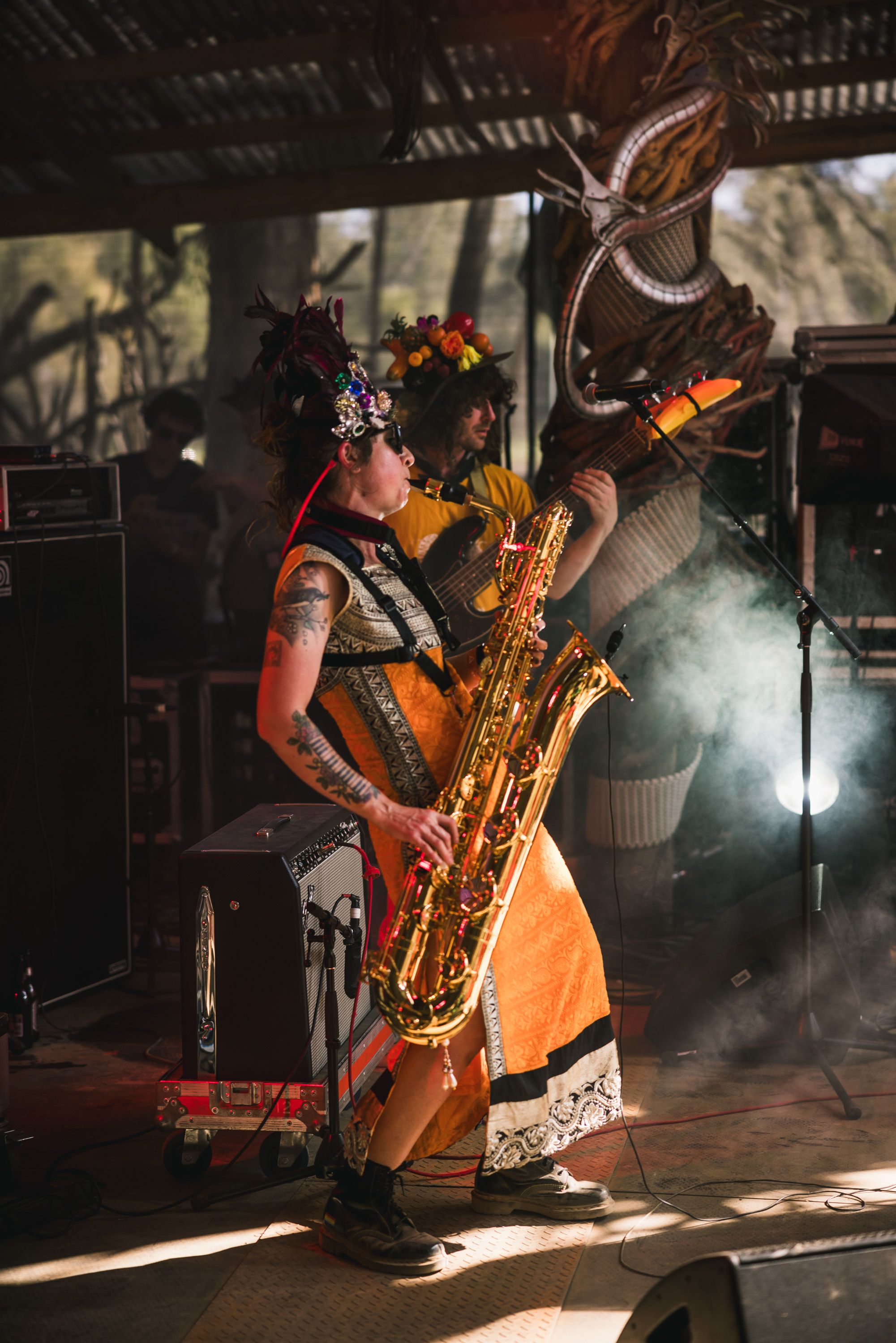 Slowmango are a six piece band from South Australia who create raw, progressive, and genre-exploring grooves, combining global musical influences with a buffet of funk, psychedelia, jazz, and progressive rock. Known for their immersive and visually striking live shows, Slowmango have packed out dancefloors at WOMADelaide, Dark MOFO, Woodford Folk Festivals and many more, earning a devoted a cult following for their infectious grooves and unique flair.